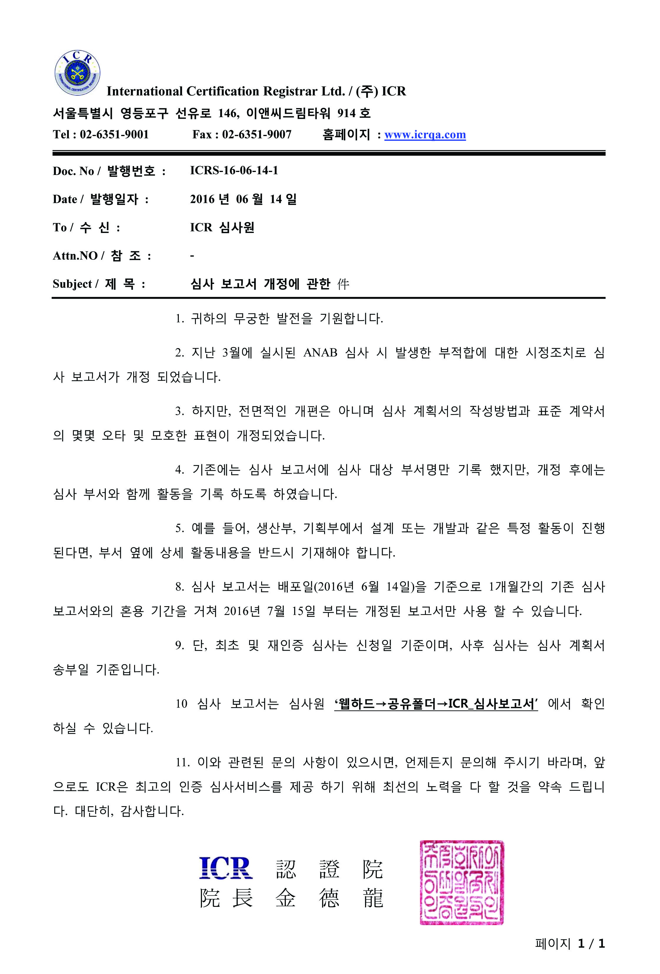 심사 보고서개정에 관한 건