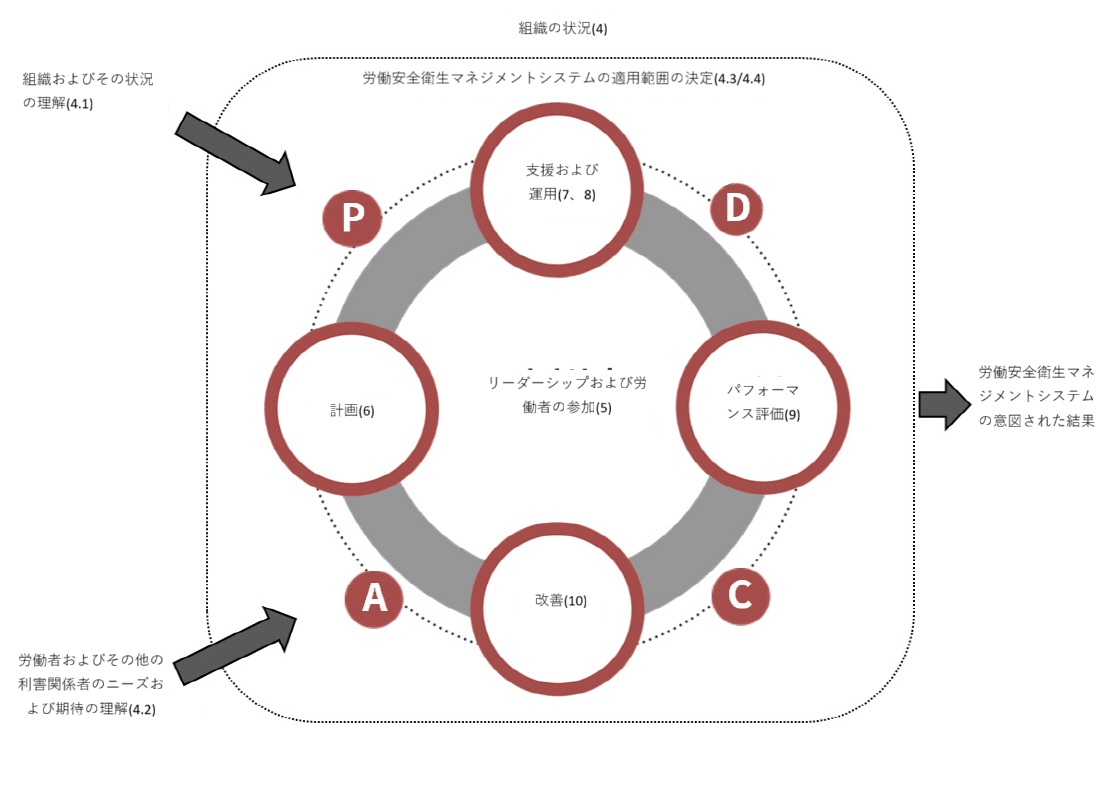 ISO 45001認証規格の要求事項は、以下のような構成になっています。
